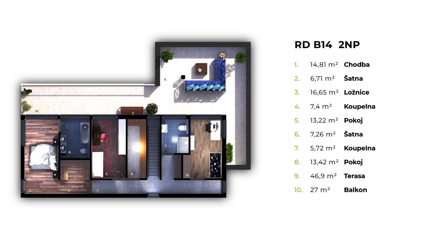 Moderní a nadstandardně řešený patrový dům se zastřešenou terasou, balkonem a prostornou garáží pro 2 auta. To je Kaštan s dispozicí 5+kk s nadstandardním prostorovým uspořádáním.